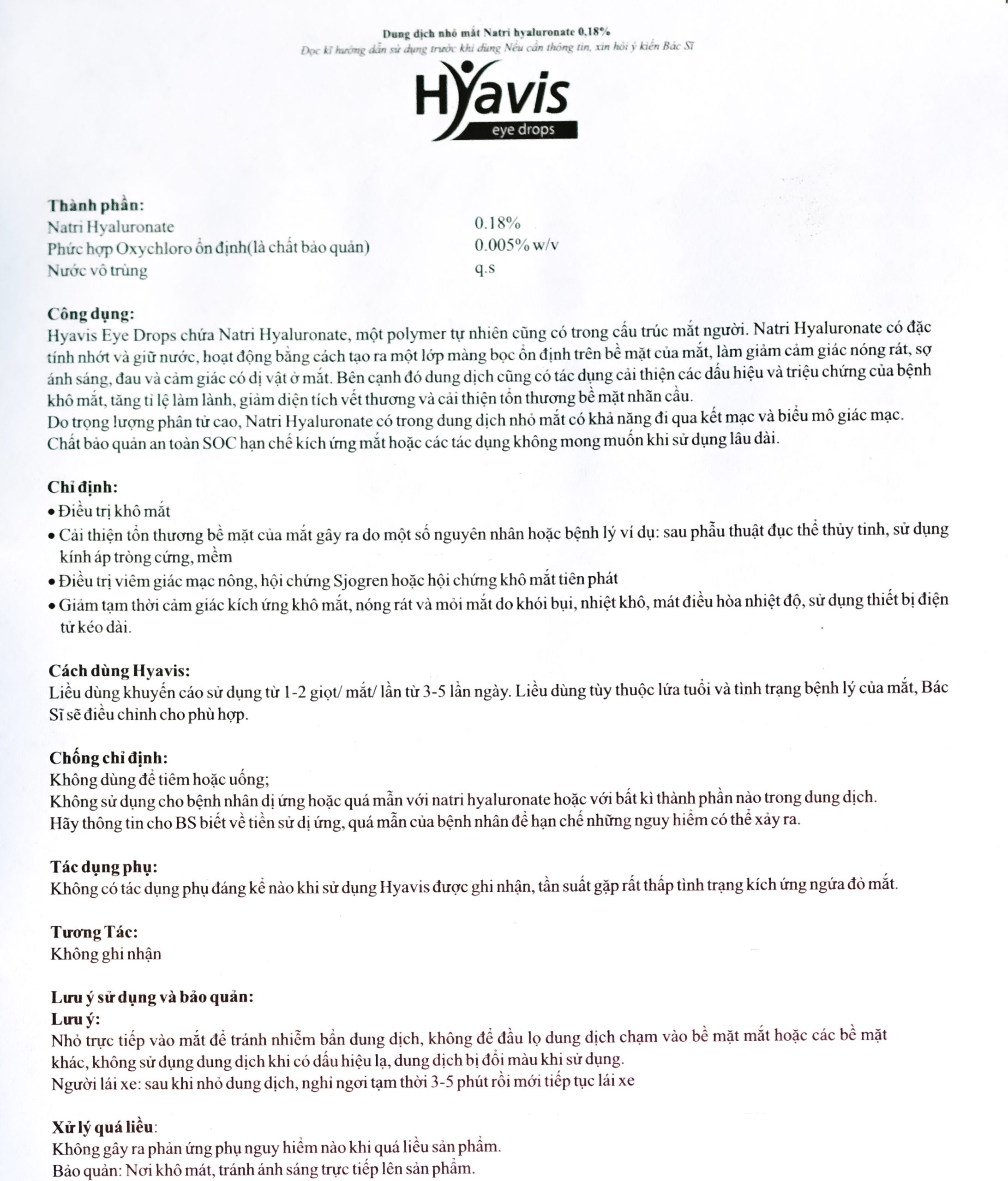 ➡️ Không. Đây là dung dịch nhỏ mắt (nước mắt nhân tạo), không phải thuốc và không thay thế thuốc điều trị. - ❓ Có thể sử dụng Hyavis mỗi ngày không?